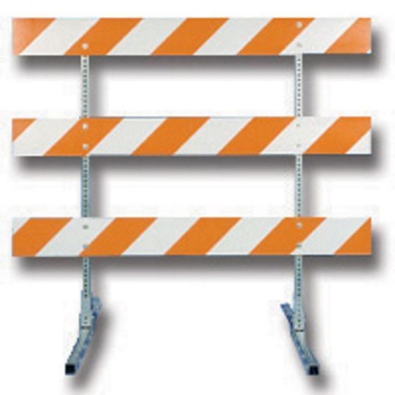 High quality telespar type III barricades are ideal for use to call attention when vehicle traffic or foot traffic needs to be re-directed or blocked. Composed of two 63" Telespar Uprights and Telespar Feet with three 1" thick x 8" high striped sheeted T-Boards .Produced with Left Hand Sheeting on one side and Right Hand Sheeting on the other, unless specified otherwise.